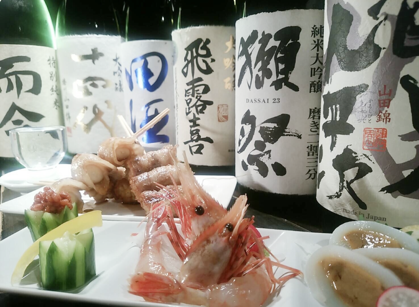 一、お刺身 大トロ生マグロ、トロサーモン、ホタテ、〆サバ、甘エビ(季節で変動します。)